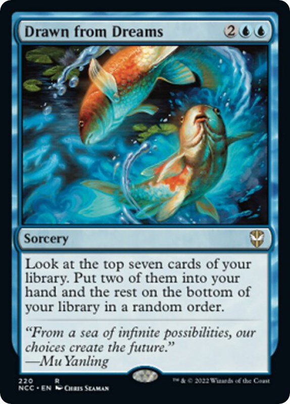 • Rules Text Contains: Look at the top seven cards of your library. Put two of them into your hand and the rest on the bottom of your library in a random order.