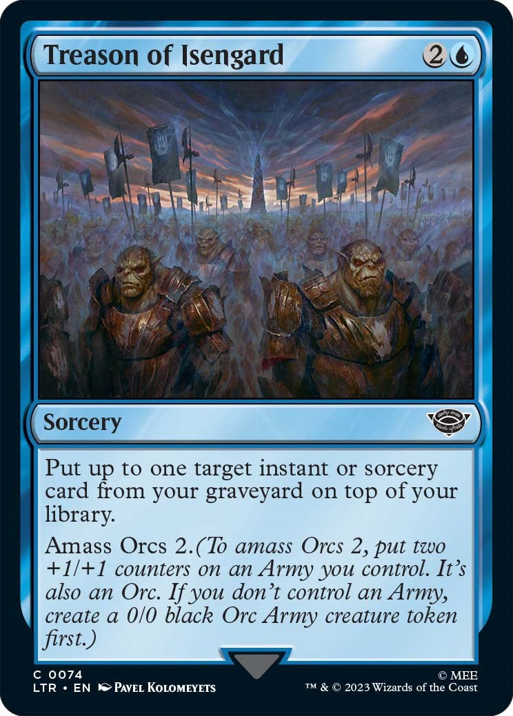 Amass Orcs 2. (To amass Orcs 2, put two +1/+1 counters on an Army you control. It's also an Orc. If you don't control an Army, create a 0/0 black Orc Army creature token first.)