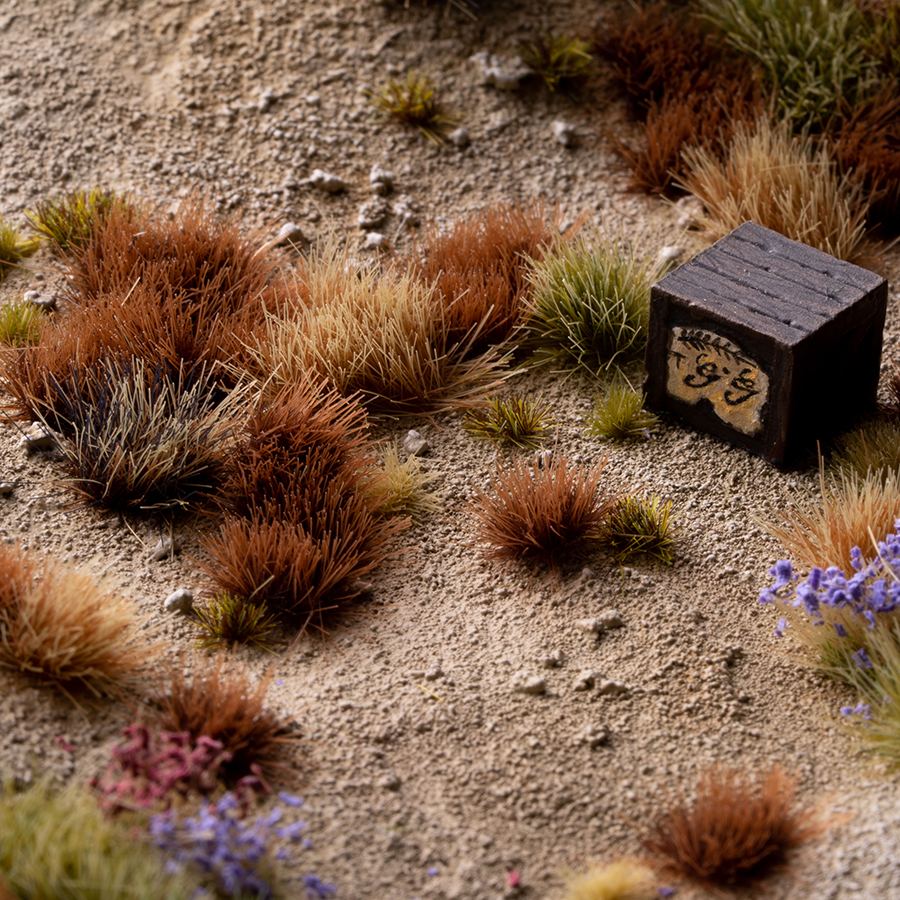 Reddish brown tufts with a strong “dry” look. Best used to simulate dry and desert environments with scarce vegetation, used alone or in combination with other “dry” tufts. Mixed with other colours and sizes they provide a multitude of spectacular variations of colour to your vegetation patches. Also great to recreate red planet environments.