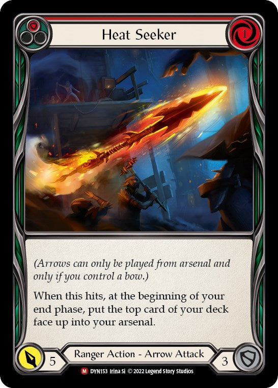 • Description: (Arrows can only be played from arsenal and only if you control a bow.) When this hits, at the beginning of your end phase, put the top card of your deck face up into your arsenal.