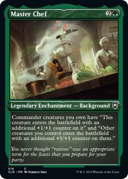• Rules Text Contains: Commander creatures you own have "This creature enters the battlefield with an additional +1/+1 counter on it" and "Other creatures you control enter the battlefield with an additional +1/+1 counter on them."