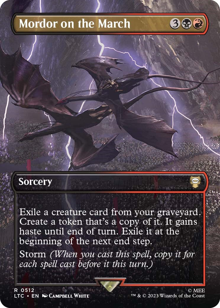 • Rules Text Contains: Exile a creature card from your graveyard. Create a token that's a copy of it. It gains haste until end of turn. Exile it at the beginning of the next end step. Storm (When you cast this spell, copy it for each spell cast before it this turn.)