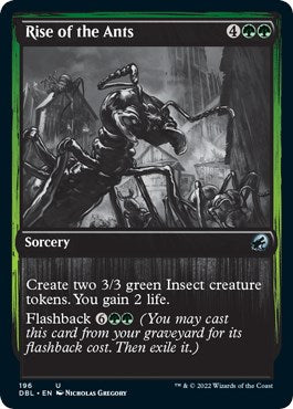 • Rules Text Contains: Create two 3/3 green Insect creature tokens. You gain 2 life. Flashback 6GG (You may cast this card from your graveyard for its flashback cost. Then exile it.)