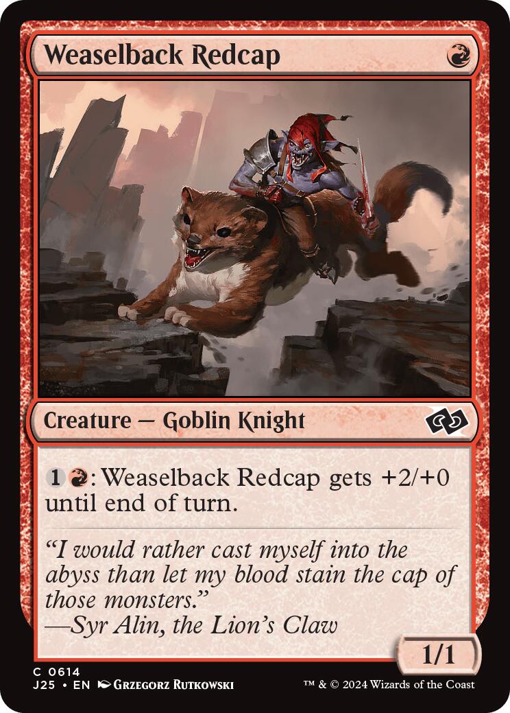 • Rules Text Contains: 1R: Weaselback Redcap gets +2/+0 until end of turn.