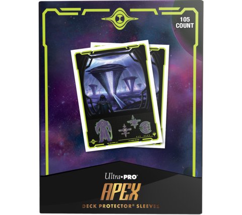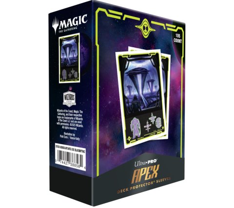 The 105ct APEX Deck Protector sleeves for Magic: The Gathering feature vibrant Edge of Eternities art from the trading card game. Archival-safe polypropylene materials ensure you can sleeve your cards with confidence. Sized for standard size trading cards measuring 2.5 in. x 3.5 in. The gloss clear front lets your foil cards shine!