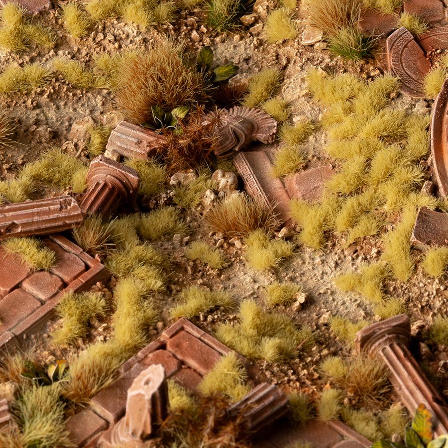 Low beige tufts perfect to simulate a large range of dry grasslands, low prairies and creeping plants on trailroads. In combination with other colors and sizes they provide a fascinating color and height variation to your scenes.