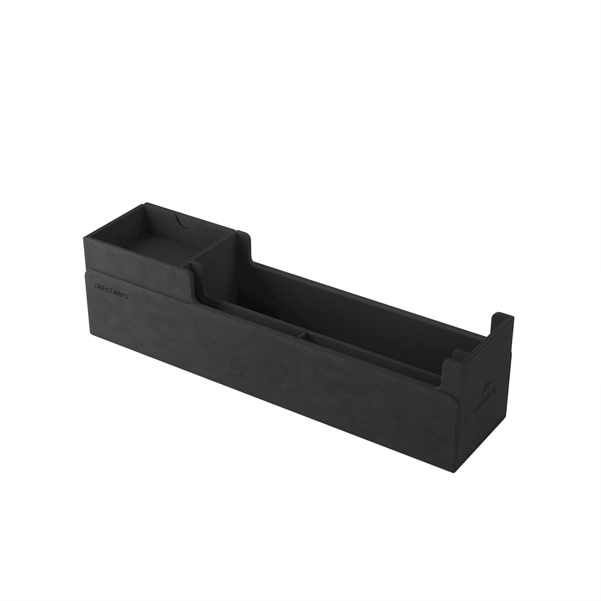 Furthermore, the top compartment of the Cards’ Lair can be used to store played cards, accessories, or as a mini dice tray. Additional slots on the side are ideal for sleeved oversized cards and standard life pads/writing pads.