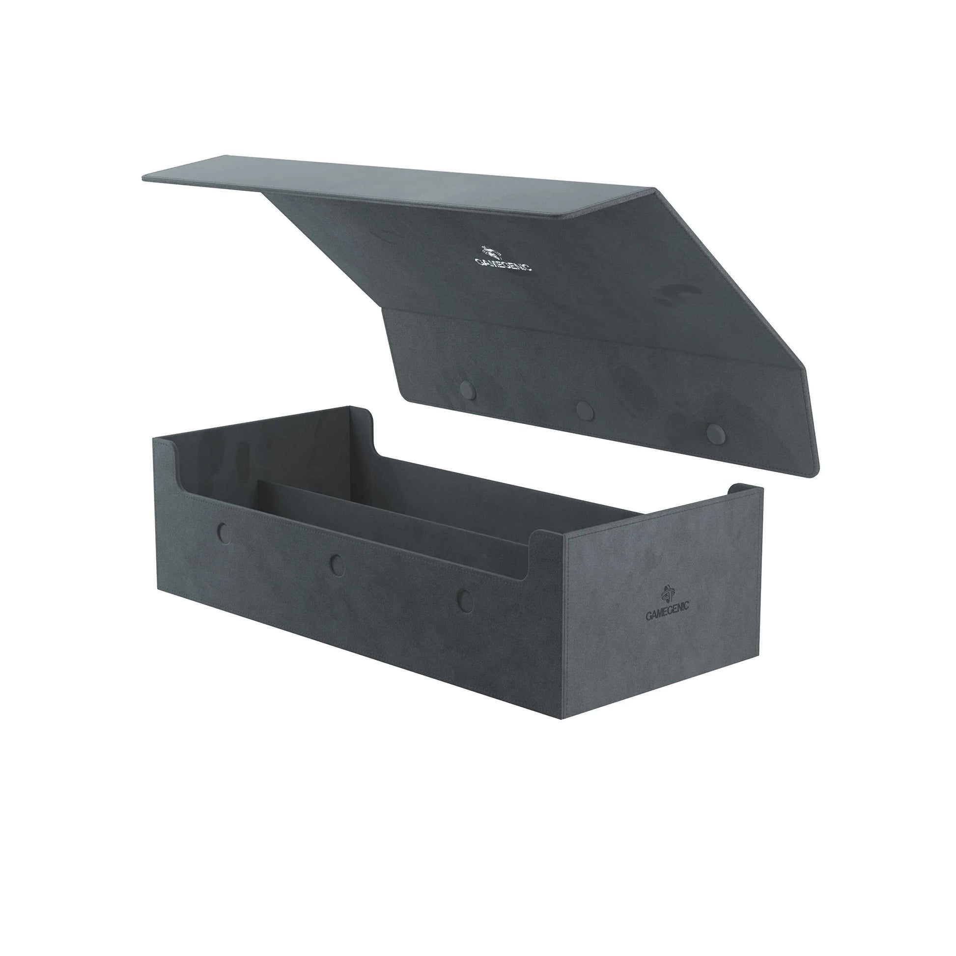 The Dungeon is ideal for housing a complete card collection. It holds several deck boxes, playmats, accessories and, of course, a huge number of single cards (even protected in bigger toploader sleeves). The closing mechanism is subtle but strong thanks to an ingenious design that keeps the box safely closed even when it is fully loaded.