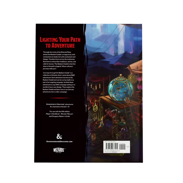 Through the mists of the Ethereal Plane shines the Radiant Citadel. Travelers from across the multiverse flock to this mysterious bastion to share their traditions, stories, and calls for heroes. A crossroads of wonders and adventures, the Radiant Citadel is the first step on the path to legend. Where will your journeys take you?