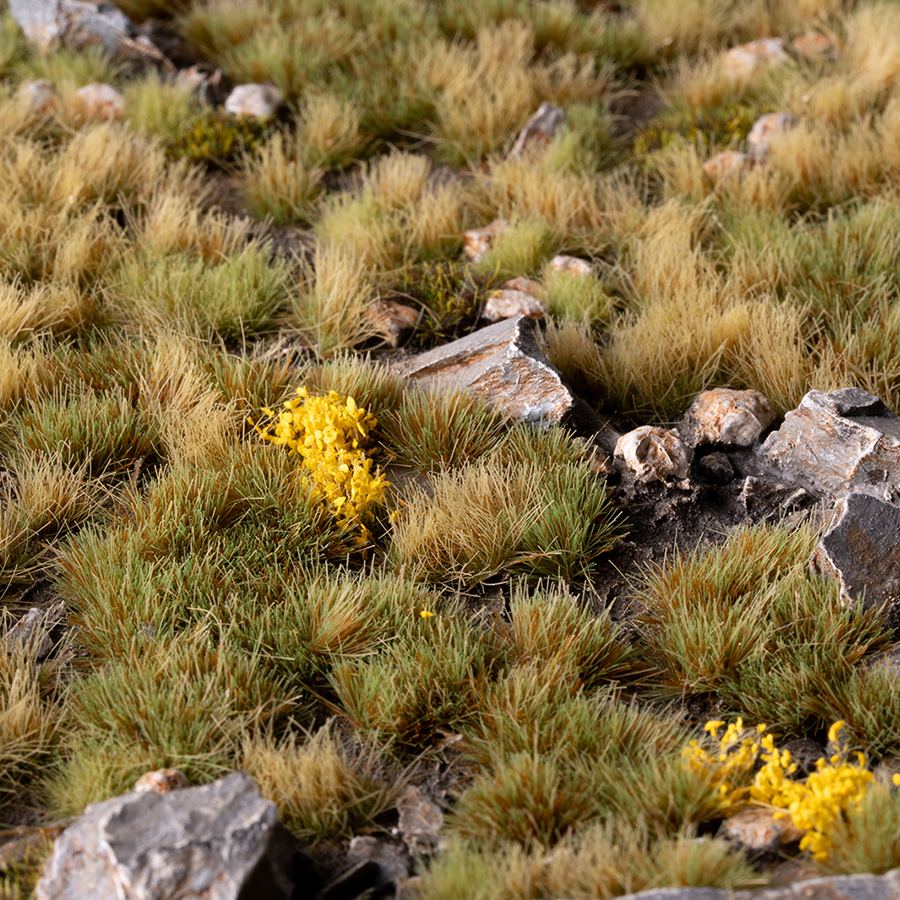 This colour set is best used to recreate a diversity of landscapes, particularly scrubs and dwarf shrublands, vegetation patches with an intense variation of greens, spotted here and there with yellow flowered bushes. This tuft set contains the same colours and sizes used in our Highland Battle Ready Bases.