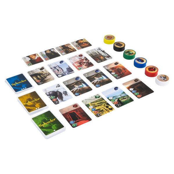 Splendor is a fast, elegant, and intuitive game in which two to four players compete to build Renaissance Europe's most lucrative and prestigious jewelry business. You begin by collecting raw gems and use those to fund the development of mines throughout the world. Once you've mined more gemstones, you must acquire the means to transport them, artisans to shape them, and finally a storefront where you can sell your polished jewels. If you produce exactly the right jewelry, a powerful Noble may become your patron, but even then they won't just hand you victory: the player whose business earns the most prestige wins. Deceptively easy to learn, Splendor involves quick strategic thinking and produces intense interpersonal competition!