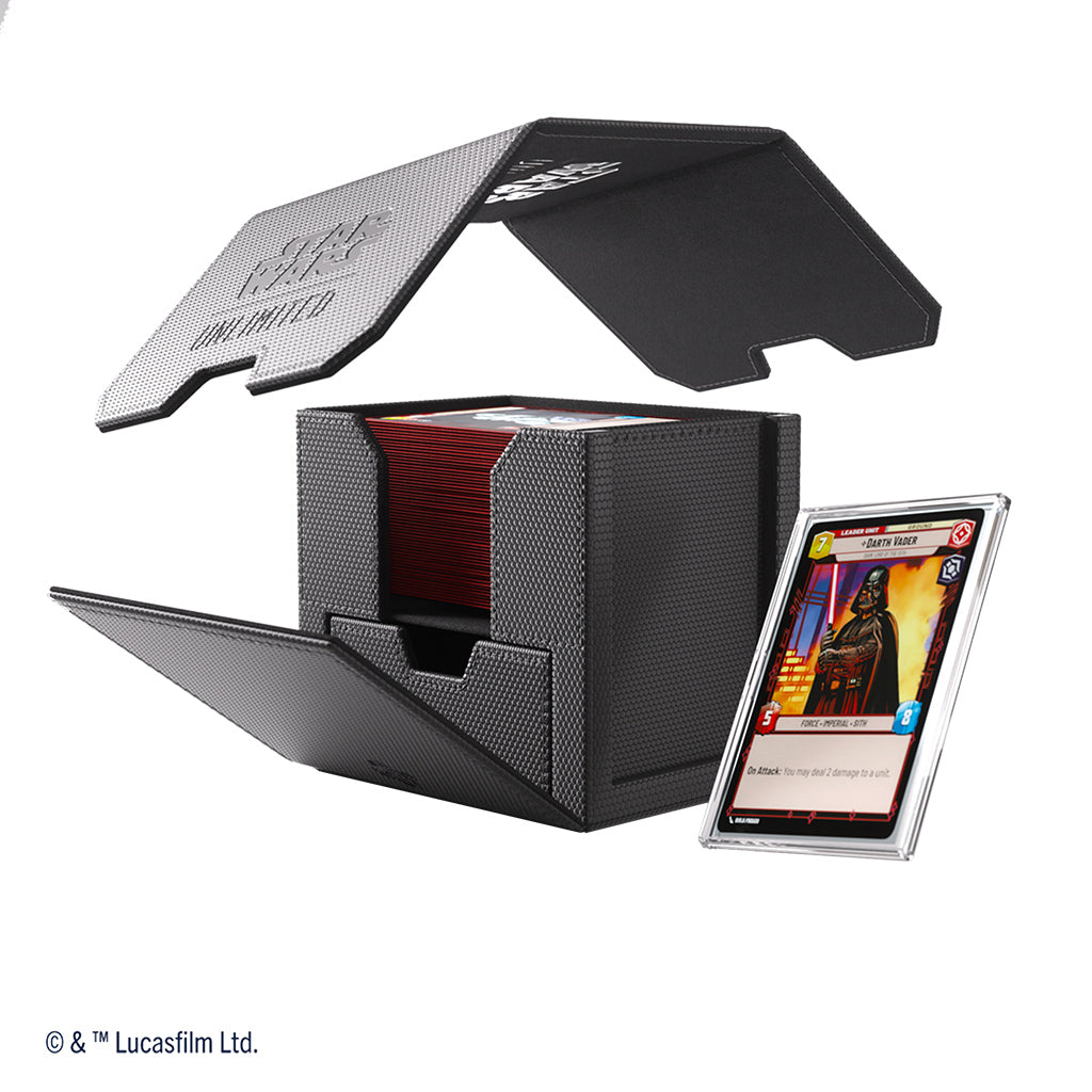 The Deck Pod, an officially licensed premium deck box, is specifically designed for the needs of Star Wars™: Unlimited players. UNIQUE FEATURE: The Deck Pod includes a Slide Card Case with additional UV protection for keeping the leader card. Due to the innovative placement of that card, the stored deck can be easily identified without opening the box. The Slide Card Case can also be detached and used during gameplay.